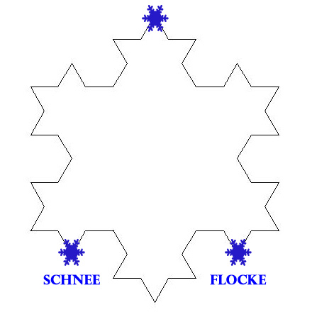 Die kleinsten Bauteile eines Schneemanns sind die Schneeflocken. Betrachten wir deshalb die Kochsche Schneeflocke in der dritten Iteration einmal näher: